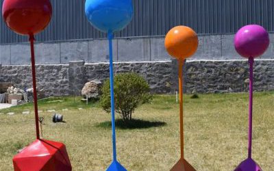 玻璃鋼彩繪氣球雕塑,以玻璃鋼為主要材料,結合彩繪技術,精致制作而成的雕塑作品,具有色澤鮮艷、質地細膩、結構穩定、耐腐蝕、耐磨損等特點,在外觀上更加逼真、細膩,可以更好地表現出雕塑作品的美感。