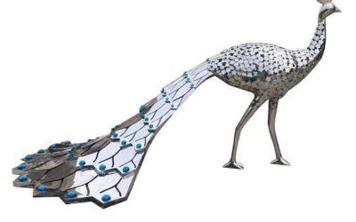園林不銹鋼鏤空鏡面孔雀動物雕塑