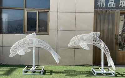 不銹鋼抽象海豚雕塑,鋼絲編織海豚雕塑廠家