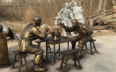 玻璃鋼吃飯人物雕塑定制,各種造型的喝酒劃拳人物雕塑案例