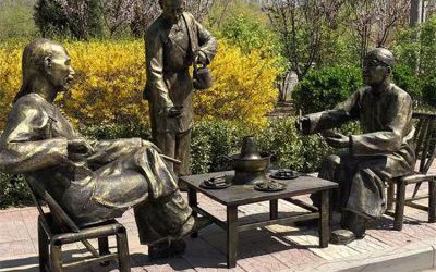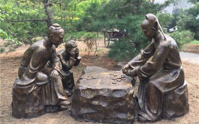 古人下象棋雕塑造型,玻璃鋼下象棋人物雕塑設計