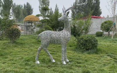 房地產花紋鹿雕塑擺件 發光不銹鋼鹿雕塑