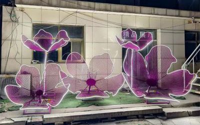 不銹鋼花朵雕塑 發光鏤空花雕塑