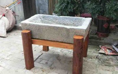 別墅庭院仿古魚缸青石做舊圓魚缸擺件 青石花盆雕塑