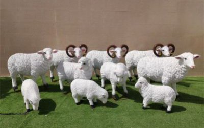 仿真綿羊雕塑,玻璃鋼羊群雕塑定制