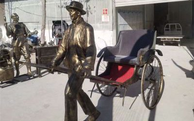 車夫拉黃包車雕塑,玻璃鋼仿銅人物雕塑
