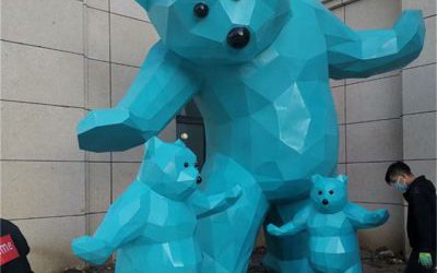 藍色不銹鋼熊雕塑,幾何切面熊雕塑加工定做