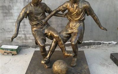 公園兩個小孩踢足球雕塑,校園運動人物雕塑加工廠家